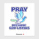 PRAY, this Christian design features a beautiful blue dove and text saying "Pray, because God Listens".