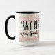 This charming coffee mug features a delicate design of soft pink stripes alternating with gentle floral patterns. The flowers, in various shades of pink, add a touch of elegance and whimsy to the mug. The words “Pray Big, Worry Small” are beautifully printed in a graceful script, serving as a daily reminder of positivity and faith. The overall aesthetic is soothing and uplifting, making it a perfect companion for your morning coffee or tea.