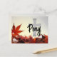 Inspirational prayer Christian postcard depicts red autumn leaves. It features a silver cross with the message to "Pray."