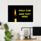 Burning wax candle of yellow colour against black background and a text Pray For ADD TEXT HERE. You can add your own text. To express sympathies. Poster.