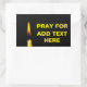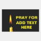 Burning wax candle of yellow colour against black background and a text Pray For ADD TEXT HERE. You can add your own text. To express sympathies. Rectangle sticker