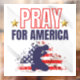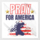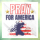 Pray For America Window Decal Depicting a silhouette of a young man praying on his knees against an artistically painted American Flag.