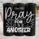 This is a graphic design piece featuring the phrase "Pray for One Another" in a stylized, layered font against a solid, light grey background. The word "Pray" is rendered in a large, elegant script font, while "FOR ONE" is placed within a decorative banner with stars. The word "ANOTHER" is in a bold, blocky font at the bottom. The overall design has a comforting and inspirational aesthetic, suitable for use on a variety of products.