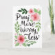 Encourage someone to have faith and not worry with this unique typography design featuring the message "Pray More, Worry Less." Design is accented with watercolor flower and greenery illustration in lower left and upper right corner. Inside has comforting words from Phillipians 4:6-7, but can be customized with your own personal message.