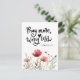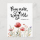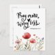 Postcard with inspirational quote scripture depicts a floral watercolor wildflower design with simple red poppies and greenery. It features an encouraging Christian quote, "Pray More Worry Less." taken from Bible Verses Philippians 4:6-7. The greeting, prayer can be personalized or deleted for a hand written message.