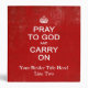 Funny yet clever "pray to God and carry on" merchandise for the Christian or Religious person. Play on words from the vintage WWII propaganda poster "keep calm and carry on". Distressed red background with white crown and lettering.