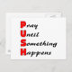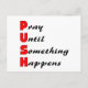 PUSH, Pray until something happens. A great Christian saying that means a lot. This design is made up od big bold letters with the word PUSH. Pray until something happens is written in black script. Image is property of Diligent Heart