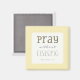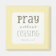 Square magnet with short but powerful scripture verse from 1 Thessalonians 5:17, "Pray without ceasing" in a modern storyteller font. Yellow background; the word "Pray" accented with same yellow.