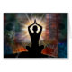 Meditator sitting in salutation prayer with colourful abstract background and radiant light by Daniel B. Holeman