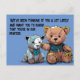 This postcard features an endearing illustration of a charming teddy bear and a gentle lamb depicted in intricate inked lines. The teddy bear, with its soft fur and friendly smile, sits snugly beside the lamb, which exudes a serene calmness. The artwork captures a sense of innocence and warmth, making it a delightful sight to behold.
