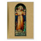 Saint Francis of Assisi born Giovanni di Pietro di Bernardone (1181/1182 – 3 October 1226), was an Italian Catholic friar, deacon and preacher. He founded the men's Order of Friars Minor, the women's Order of Saint Clare, the Third Order of Saint Francis and the Custody of the Holy Land. This is a beautiful stained glass image of St. Francis with a gold-like lace background. On the left side of the card is the prayer of St. Francis.