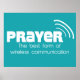 This inspirational Christian design says, “PRAYER The best form of wireless communication” and features the wireless symbol we often see. Click the “Customize it” button to add your own personalized text.