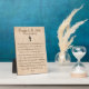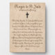 This tabletop plaque has a powerful prayer to St. Jude in times of suffering against a rustic brown background: Most holy Apostle, St. Jude, faithful servant and friend of Jesus, I place myself into your hands at this difficult time. Help me to know that I am not alone. Please pray for me, asking God to send me comfort for my sorrows, bravery for my fears, and healing for my suffering. Ask our loving God to strengthen my faith and give me the courage to accept His Will for my life. Thank you, St. Jude, for the hope you offer to all who believe in you. Amen
