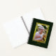 Bullet journal design features photo of a praying Buddha garden statue with black border background. Personalize with name or initials. Perfect appointment keeper for massage therapists and other energy bodyworkers.