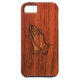 Beautiful Christian mahogany wood texture print with praying hands phone case.