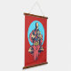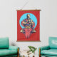 Stylish wall tapestry features praying Monk graphic novel style illustration on red background
