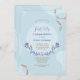 A handsome First Communion invitation with hues of a soft blue background featuring rosary beads and dainty floral branch. The card is easy to customize with your wording, font and font colour. Not exactly what you're looking for? All our products can be custom designed to meet your needs at no extra charge. Simply contact us at askpixieprints@aol.com. Coordinating products available at your request at no additional charge.