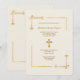 Decorative corners in shades of gold against a cream background create this handsome religious invitation. Use it for baptisms, christenings, communions and confirmations. The cross can be dragged to any location, made larger or smaller ( + - ), or eliminated. (<a href="https://www.freepik.com/free-photos-vectors/background">Background vector created by freepik - www.freepik.com</a>). (<a href="https://www.freepik.com/free-photos-vectors/background">Background vector created by rawpixel.com - www.freepik.com</a>). The card is easy to customize with your wording, font, font colour and choice of six paper types.<br/><br/>Not exactly what you're looking for? All our products can be custom designed to meet your needs at no extra charge.<br/><br/>Simply contact us at askcottonlamb@gmail.com<br/><br/>Coordinating products available: