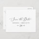 Cette fine couleur noire horizontale sauve la carte postale date est parfait pour un mariage moderne. Le design minimaliste romantique présente une belle et élégante typographie noire sur un arrière - plan blanc au look épuré et sobre.