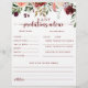 Ces prédictions florales rustiques et cartes de conseils sont parfaites pour un baby shower d'été. Le design est composé de fleurs d'aquarelle bordeaux, roses et rousses avec des feuilles verts dans un arrière - plan verni brun.