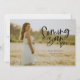 Stylish pregnancy announcement card featuring an overlay script text that says "coming soon" with a heart. You can add 3 photos on this card (front and back).