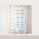 Welcome guests in cheerful summer style with this playful “Pregnant + Poolside” Baby Shower Fabric Welcome Sign, designed to bring fun, color, and personality to your celebration. Featuring soft peach stripes, bright sky blue illustrations, and a bold wavy orange frame, this charming design captures the carefree vibe of a sunny poolside baby shower.