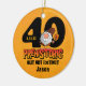 Funny 40th birthday design with smiling cartoon caveman holding a club and torch. Text says 40 PREHISTORIC BUT NOT EXTINCT. Distressed background. Personalize it with your own custom text. PinkInkArt original!