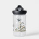 Prehistoric Dinosaur Scene, personalized water bottle. Features, template text line for name in coordinating green colour.