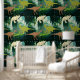 Dinosaurs from 65 million years ago tromp through a prehistoric jungle. Put this in a kid's bedroom or playroom.