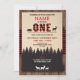 Tourner une invitation de bûcheron. Impression de chèques rouge et noir.