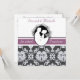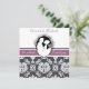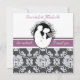 Notre faire-part de mariage customisée First Kiss présente un mari et une femme mariés sur le point de s'engager dans leur premier baiser. Un arrière - plan damassé gris et blanc avec une bande violette et un texte qui dit "il a demandé... J'ai dit oui" et des endroits où vous pouvez ajouter votre cérémonies mariage et les détails de réception sur un faire-part de mariage unique et classe entièrement personnalisable.