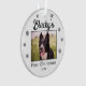 Premier Noël Chiot Nom Snowflakes Photo Ornement. Personnalisez l'ornement avec la photo, le nom et l'année de naissance de votre chien - insérez votre photo de chiot préférée. Vous pouvez utiliser cet ornement personnalisé pour n'importe quel animal de compagnie. Une belle tenue de vacances pour un propriétaire de chien.