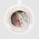 Cet ornement de Noël moderne et personnalisé présente un élégant style faux or. Personnalisez le nom, l'année et la photo. C'est à double face. Ce modèle fonctionne le mieux avec les photos au format paysage avec le bébé au centre.