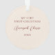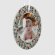 Ce magnifique ornement photo de Noël de Baby's First propose un motif floral et verdoyant dessiné à la main dans les couleurs classiques de Noël, vert foncé, rouge bordeaux, et ivoire sur un arrière - plan de couleur personnalisée (montré dans le beige de sable clair). Un petit cadre couleur ivoire permet à votre photo de se démarquer de l'arrière - plan. Le dos contient des modèles de texte pour une personnalisation simple. Parfait pour votre nouveau petit !