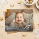 Célébrez le premier Noël de votre nouveau bébé avec cette carte de faire-part de vacances de Noël pour bébé moderne. Doté d'un adorable bébé souriant sur un arrière - plan beige et or doux, cette carte capture la chaleur des moments familiaux pendant la période des fêtes. L'élégant script ajoute une touche de charme festif, ce qui en fait un parfait souvenir pour les premiers Noël de votre famille.