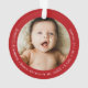 Célébrez vos premières vacances avec cet ornement de Noël 1 photo de naissance de votre bébé rouge. Cette adorable conservation dispose d'un espace à personnaliser avec la photo et la date de naissance de votre bébé, ce qui en fait un souvenir chéri à accrocher sur votre sapin de Noël année après année. Le design rouge classique et le thème festif font de cet ornement le cadeau parfait pour les nouveaux parents ou un ajout réfléchi à votre propre décoration de vacances. Créez un souvenir magnifique et sentimental du premier Noël de votre bébé qui sera chéri pour les années à venir. Une typographie simple et intemporelle courbée autour de la photo.