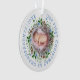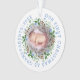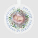 Premier Noël en tant que grands-parents portent bébé garçon photo ornement acrylique. Ce design festif présente une photo du bébé dans un cadre de couronne de Noël et le texte : "NOTRE PREMIER NOËL EN GRANDS PARENTS. 20XX" en bleu.