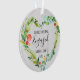 Vacances d'aquarelle verdure premier Noël engagé ornement de Noël. Customisez le texte, ajoutez vos noms et votre date.