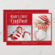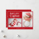Une simple typographie carte de faire-part de naissance rouge de vacances avec un design photo. Les caractéristiques de ce design peuvent être personnalisées.