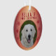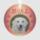 Premier ornement photo de Noël Red Snowflake Chiot. Flacon rouge et arrière - plan dégradé de couleur rouge et orange. Personnalisez l'ornement avec la photo, le nom et l'année de naissance de votre chien - insérez votre photo de chiot préférée. Vous pouvez utiliser cet ornement personnalisé pour n'importe quel animal de compagnie. Un grand souvenir de vacances pour un propriétaire de chien.