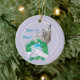 La chèvre pygmée - Les premiers ornements de chèvre de Noël avec un flair tropical. Arrière - plan de lavande avec forfaits cadeaux pastel et des branches de vacances avec un joli ornement lavande. Chaque conception comporte une race de chèvres et sur le dos une couronne tropicale de vacances.