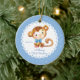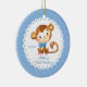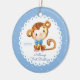Le premier ornement de Noël du bébé comporte un petit ensemble doux de singe sur un arrière - plan bleu de point de polka avec un cadre cranté. Personnalisez avec votre information de bébé et date et vous sont tous placent pour aller ! Cadeau daté merveilleux de souvenir pour ęr Noël de votre bébé.