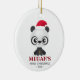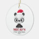 Premier ornement de Noël du bébé avec un mignon ours Panda portant le casquette et la ceinture du Père Noël. Personnalisable avec le nom et l'année de votre bébé.