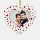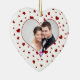 Souvenir d'ornement du jour de valentine de couples de photo ęr avec le motif rouge et blanc classique de coeurs, personnalisable avec vos noms et photo. Le souvenir parfait de votre première Saint-Valentin ensemble comme couple.
