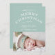 Cette carte de vœux de Noël verte et blanche avec ses polices de caractères vintage et un espace pour la photo de votre bébé est un choix parfait pour les vœux de Noël de votre bébé. Conception par Elke Clarke© JOYEUX NOËL ET BONNE ANNÉE.