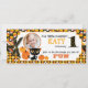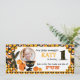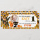 Chatte noir entouré de citrouilles avec arrière - plan de maïs bonbon et garniture à rayures à l'aspect noir et orange polka-point design pour un premier anniversaire d'Halloween.
