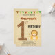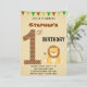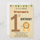 Invitation d'anniversaire avec le thème animal de safari mignon et la combinaison de couleurs verte et brune.