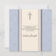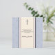 Cette invitation religieuse mélange plusieurs couleurs douces. Simple, petit, les remous et la bordure crantée avec une croix argentée rendez-le approprié au baptême, au baptême, aux premières célébrations de communion et aux confirmations.