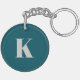 Simple et élégant porte - clé monogramme de lettre initiale personnalisé dans la typographie minimaliste moderne en gris pâle sur bleu turquoise. Un cadeau personnalisé parfait ou un accessoire avec une touche personnelle!