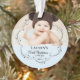 Commencez une nouvelle tradition familiale en créant un ornement de vacances pour la première année, la deuxième année et ainsi de suite du bébé. Style moderne et élégant avec l'une de vos photos de bébé préférées. (Je sais qu'il est difficile d'en choisir un!) Police de style script élégante mise en évidence par le nom et l'année de don de votre bébé. Arrière - plan demi-cercle bleu pâle.